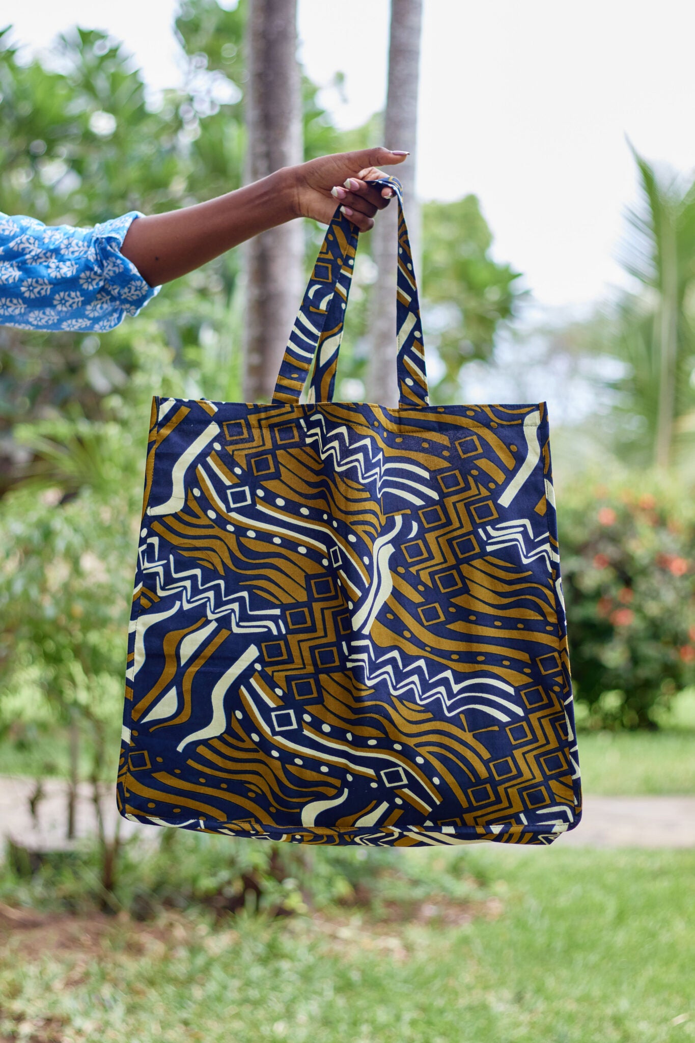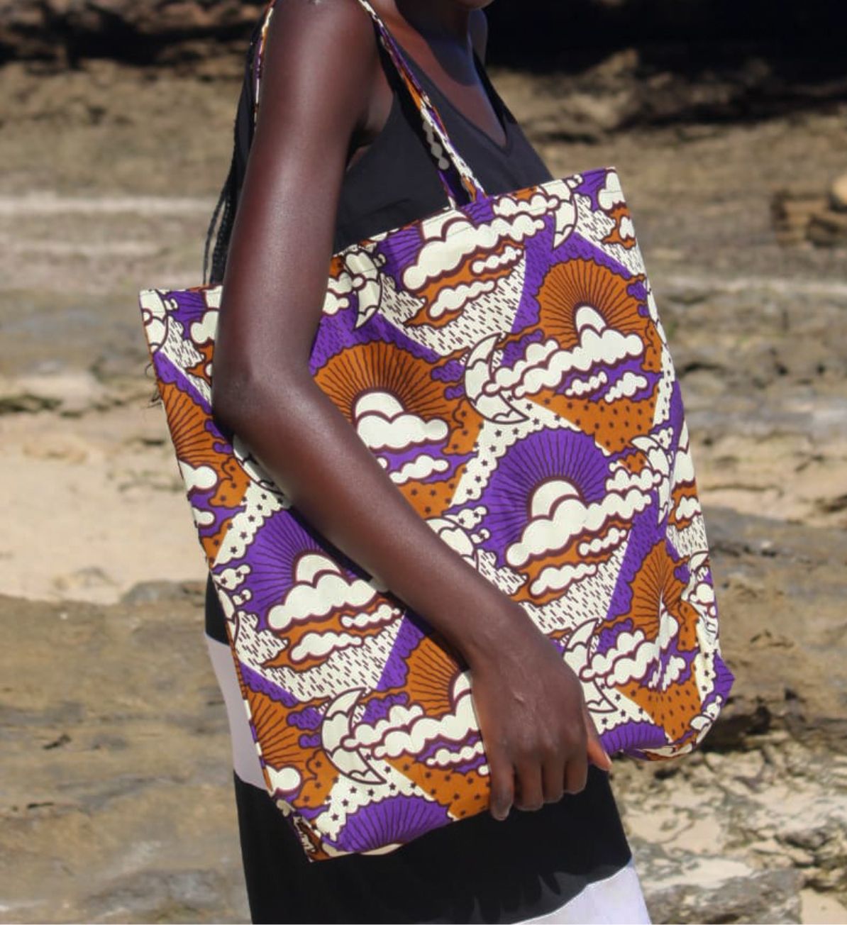 Designed in brightly patterned kitenge cotton and lined with an ultra-resistant recycled material, it is perfect for adding a touch of color and style to your everyday life.