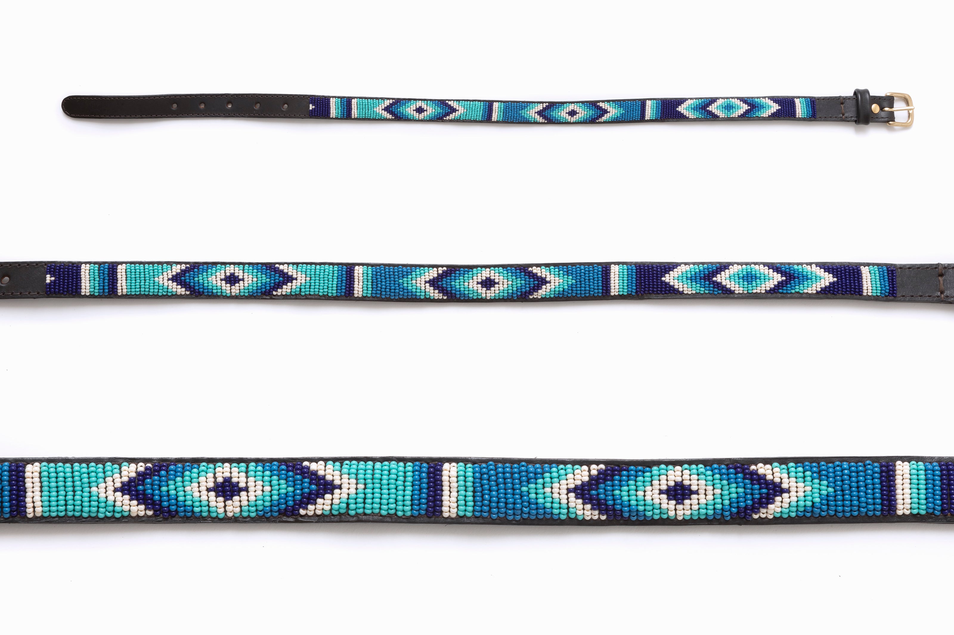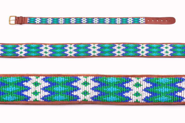 MiniRosa collaborates with Maasai artisans, experts in the art of weaving colored beads on leather, an ancestral and refined know-how from East Africa. Maasai patterns are immediately recognizable by their bright colors, each loaded with symbolism: orange evokes hospitality, while blue represents energy and the sky.