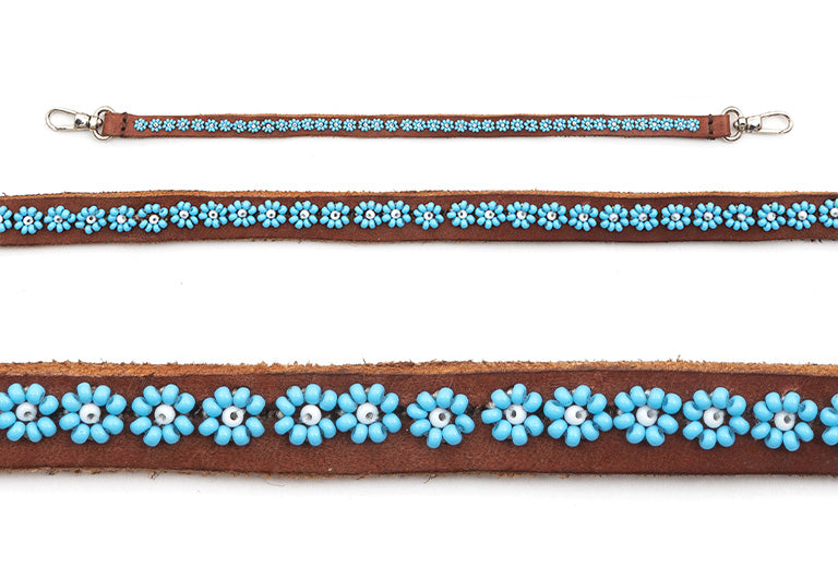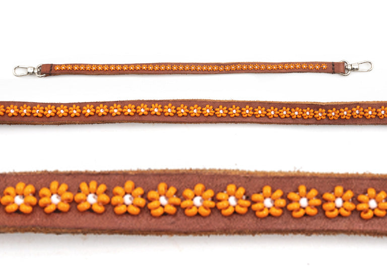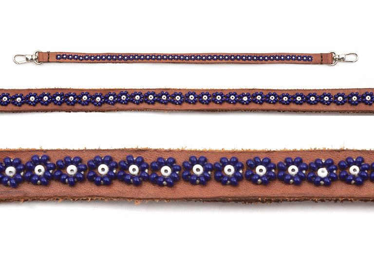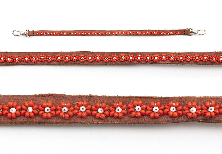 EMBROIDERY OF COLORED BEADS ON LEATHER